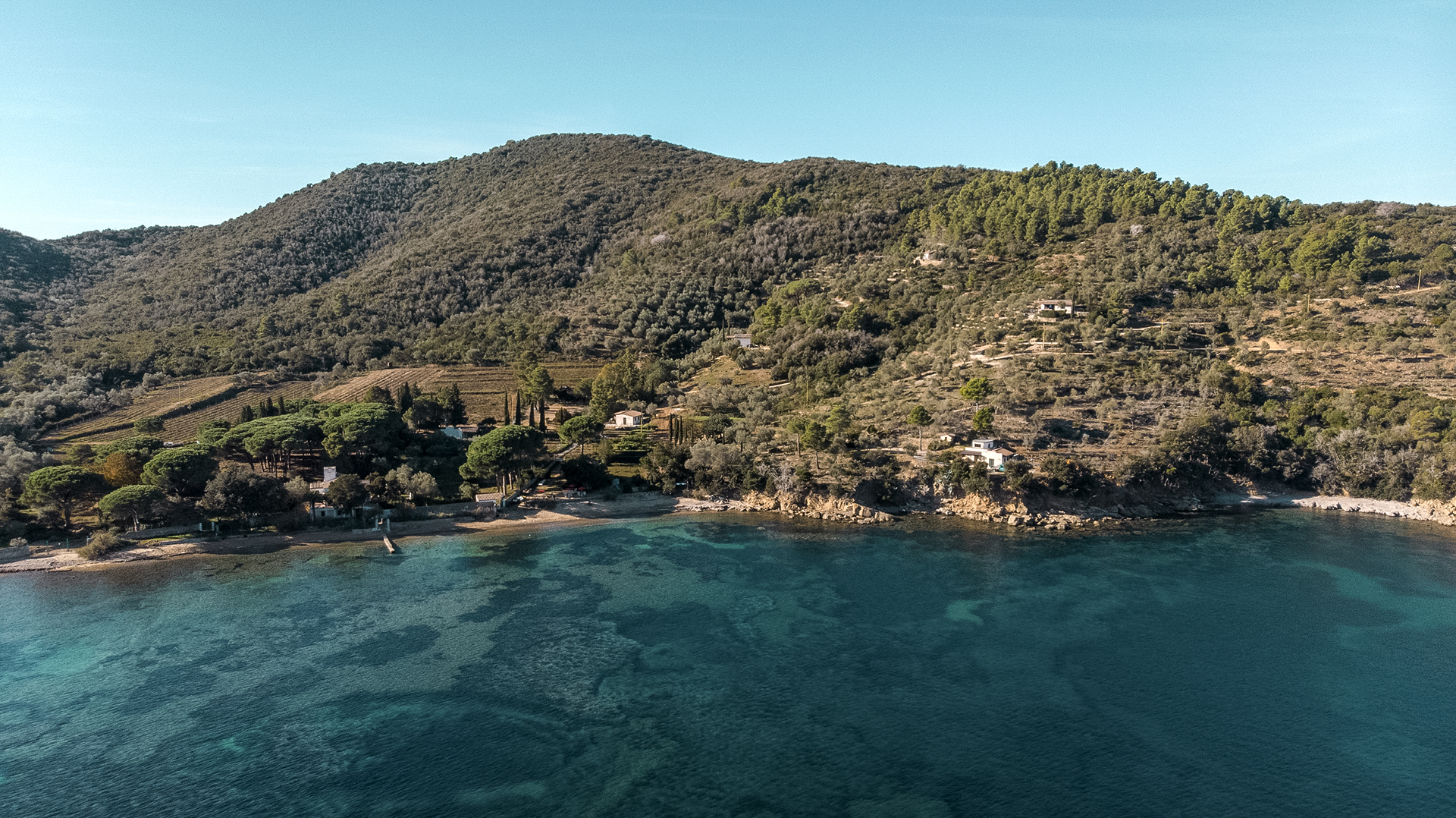 Nel cuore più verde dell'isola d'Elba, in un ambiente incontaminato dove tutto profuma di buono: di fiori, di erba, di campagna. Dove ogni angolo è un quadro idilliaco: le dolci colline ritmate dagli ulivi, il mare che luccica nel sole. Dove la musica della natura segna il passo di giorni lieti: il frinire delle cicale, il canto degli uccelli. Dove ogni ora del giorno e della notte regala l'emozione diversa: albe, tramonti, pleniluni che si susseguono in una fuga di colori.