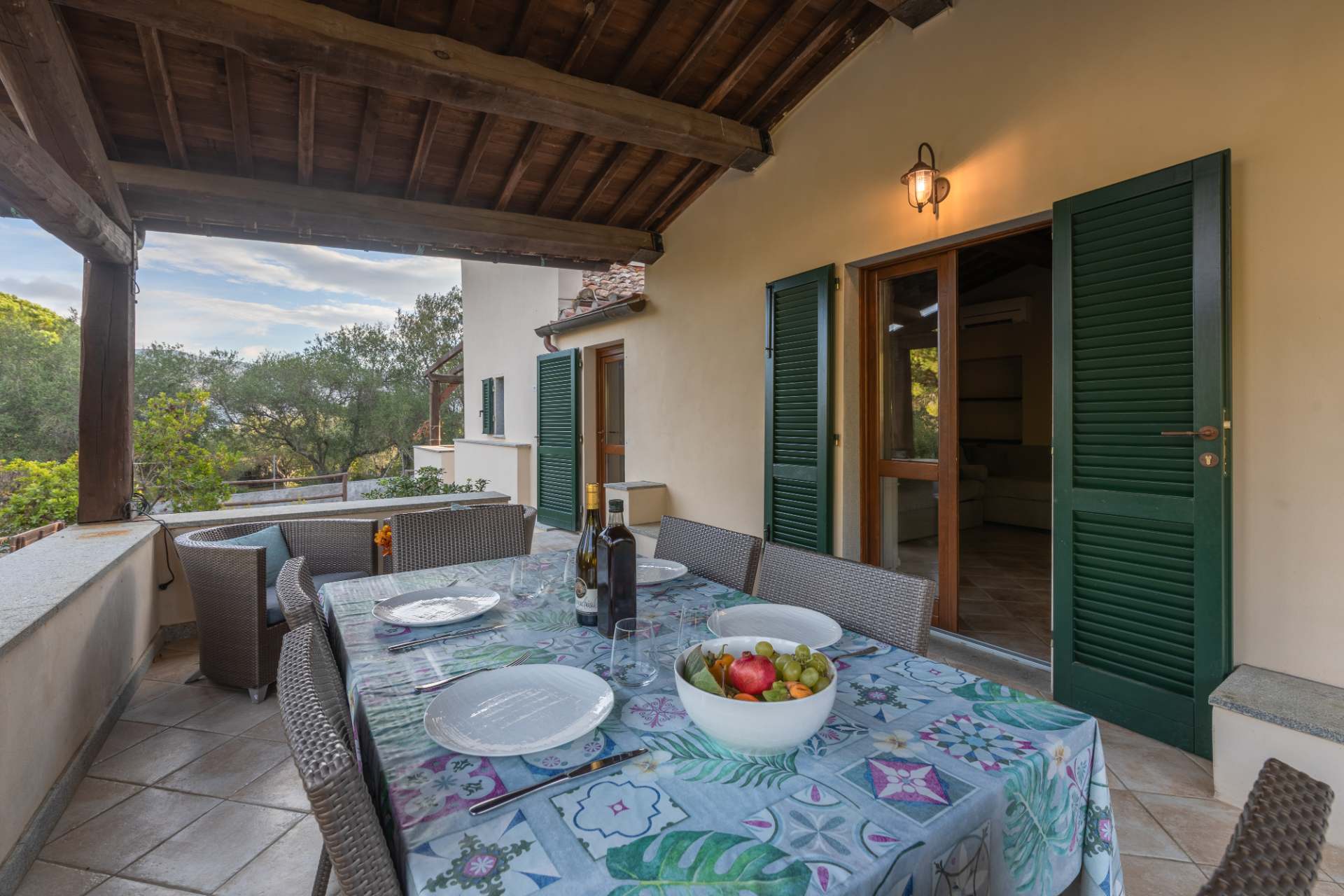 panoramicissimo patio attrezzato con tavoli e sedie